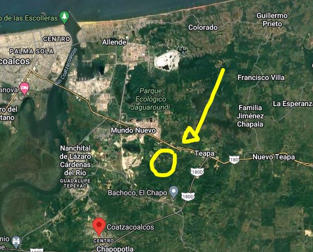 A un lado corre tubería de Pemex y cerca de vía de tren y de carretera